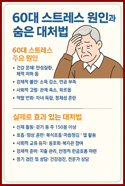 노년의 불안과 우울은 피할 수 없는 숙명이 아니다. 운동, 호흡, 사회활동, 식습관, 목표 설정, 전문가 도움, 가족의 지지라는 일곱 가지 축을 균형 있게 활용하면 충분히 관리할 수 있다. 중요한 것은 혼자 끙끙 앓지 않고, 생활 속 작은 실천을 꾸준히 이어가는 것이다.